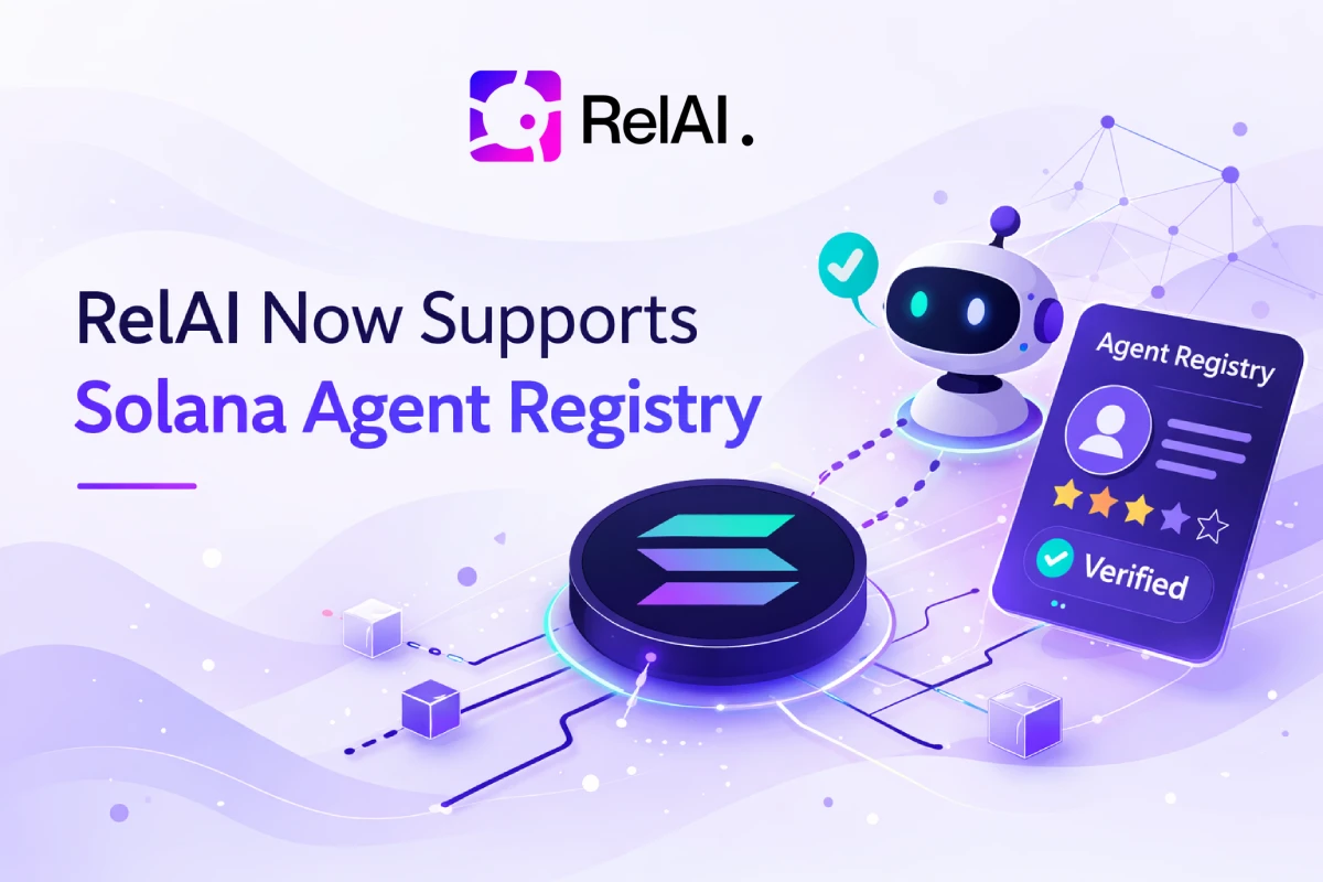 RelAI now supports the Solana Agent Registry — the official ERC-8004 compatible on-chain identity and reputation infrastructure for AI agents on Solana, backed by the Solana Foundation.